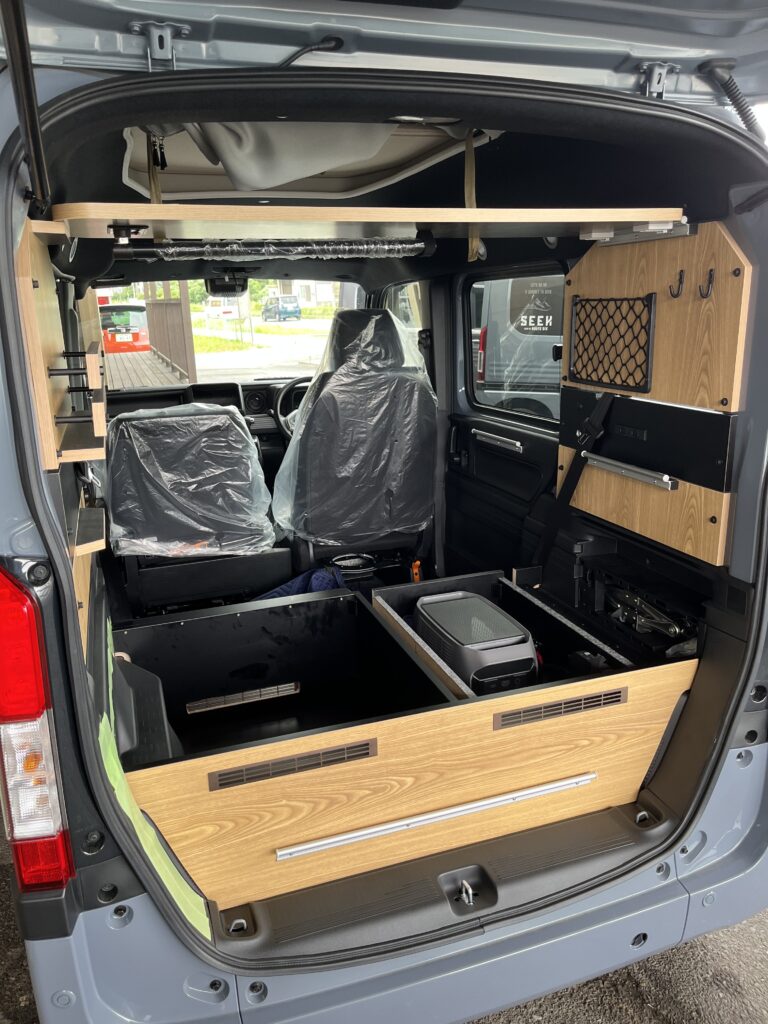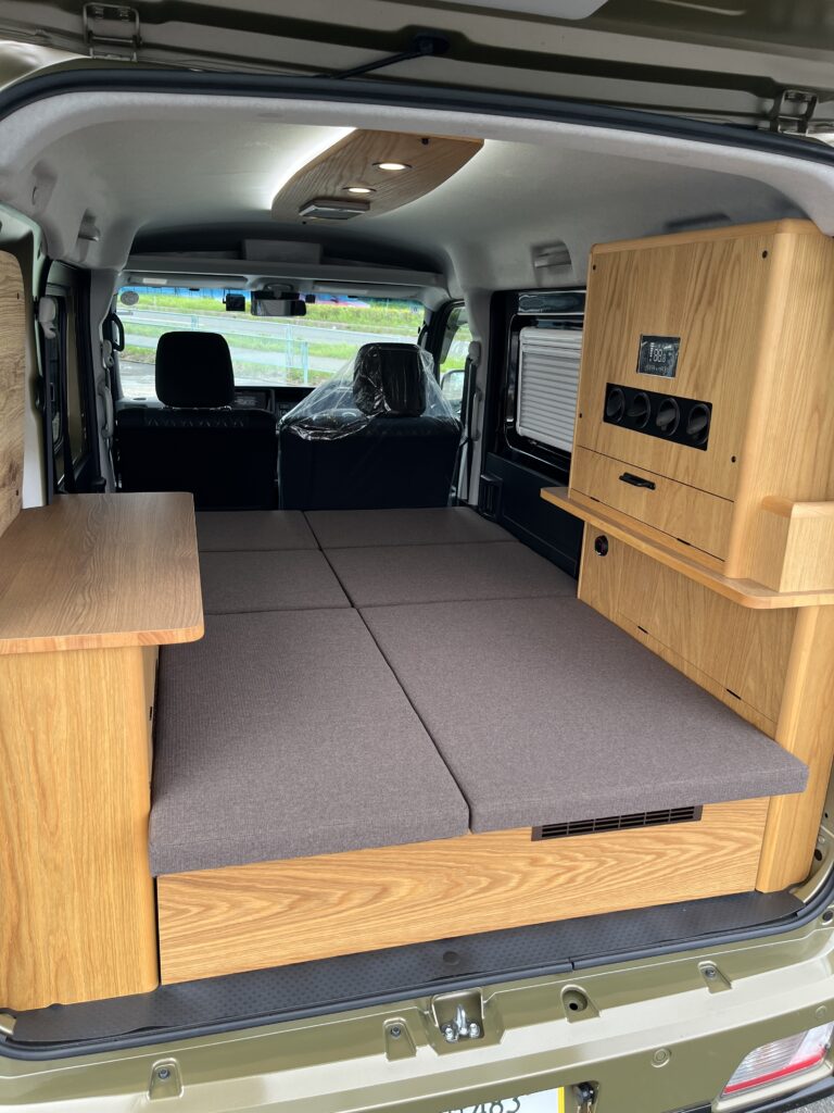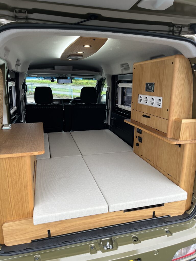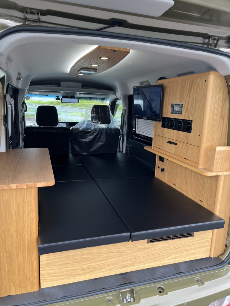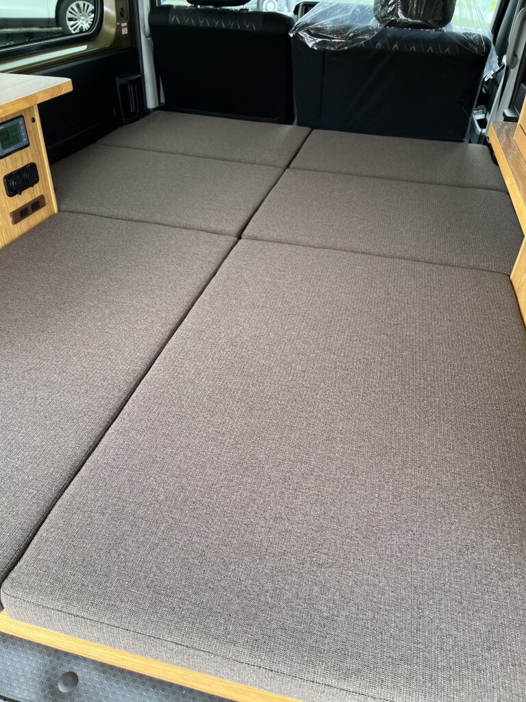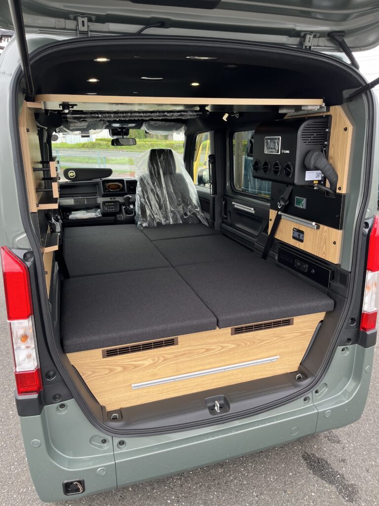 クーラーを白にしたり、アイボリー系のベッドマットで内装が明るくなりました♪