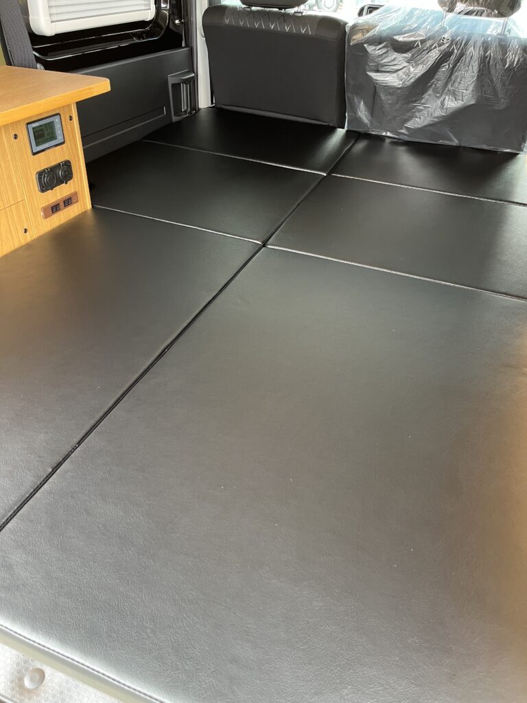 黒のレザー調ベッドマット生地を採用(≧▽≦)