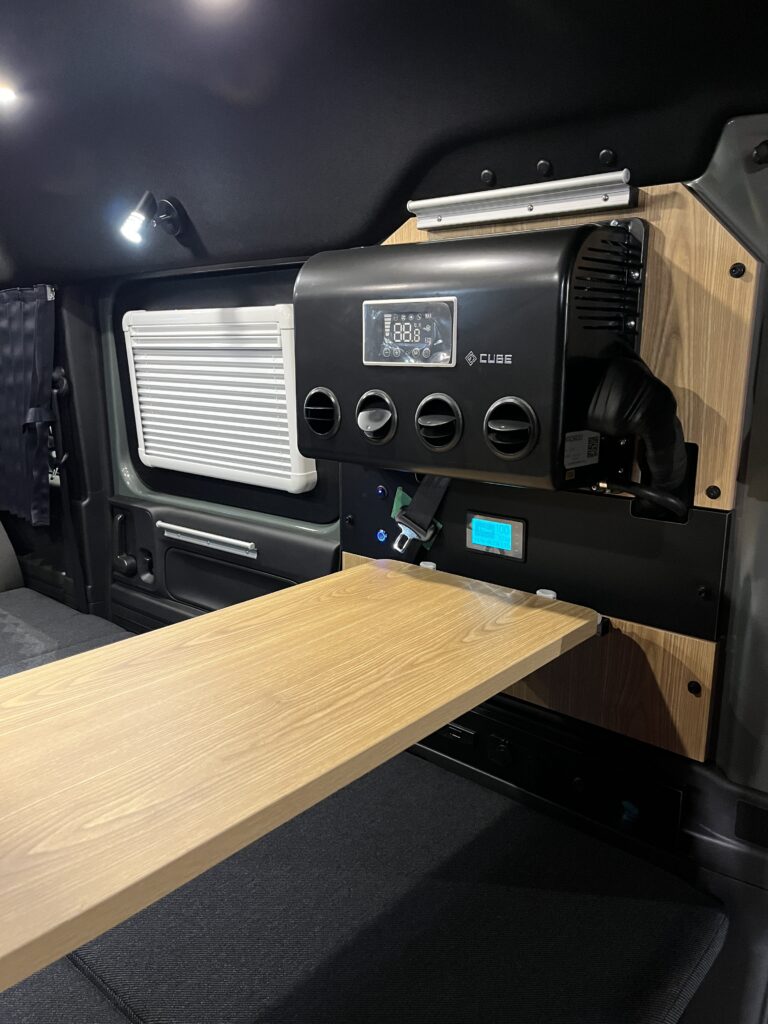 断熱施工や照明取り付けも終わりクーラーや電装関係の作業中です(^^ゞ