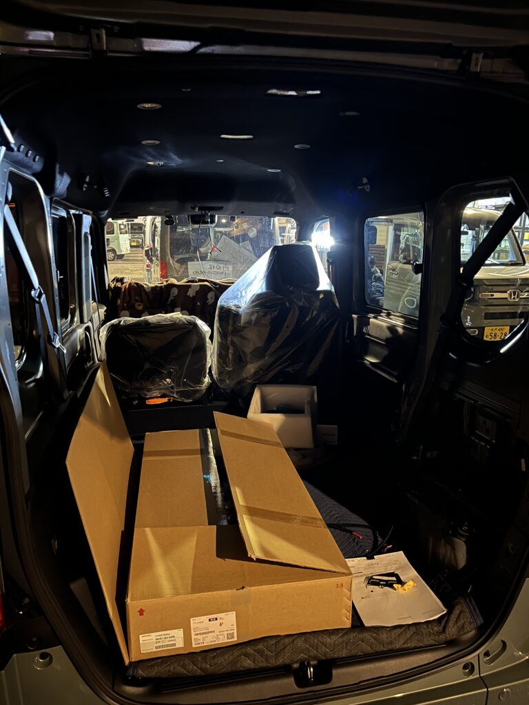 天井断熱、照明取り付け完了!現在ルーフコンソール取付中です(^^ゞ