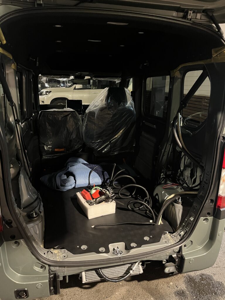 持込のディスプレイオーディオの取付も終わり現在クーラー取付中です(^^ゞ