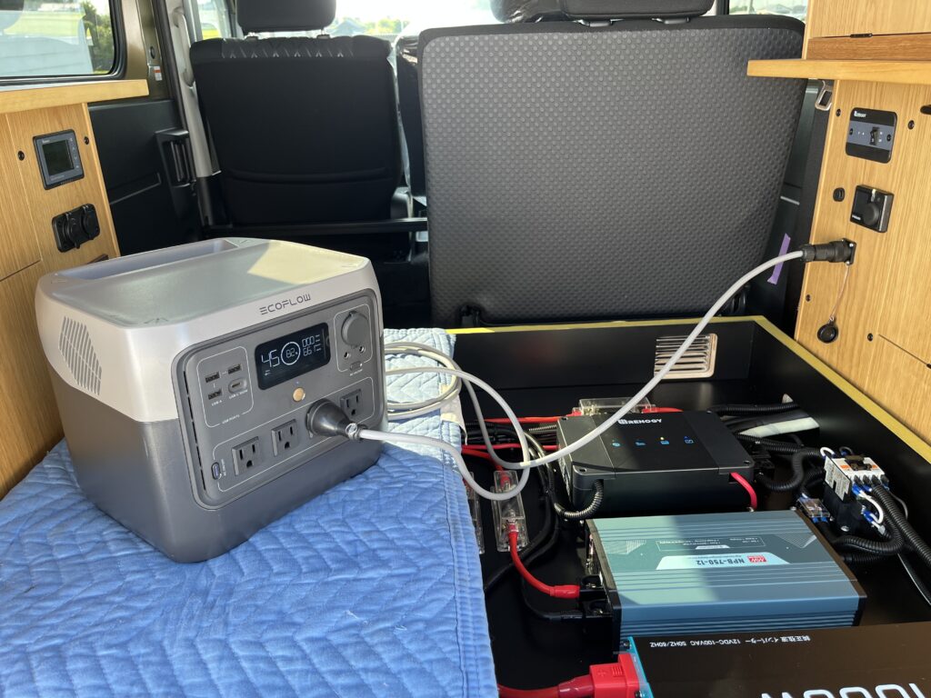 ポータブル電源の電気が外部充電器を介してサブバッテリーに供給されます!