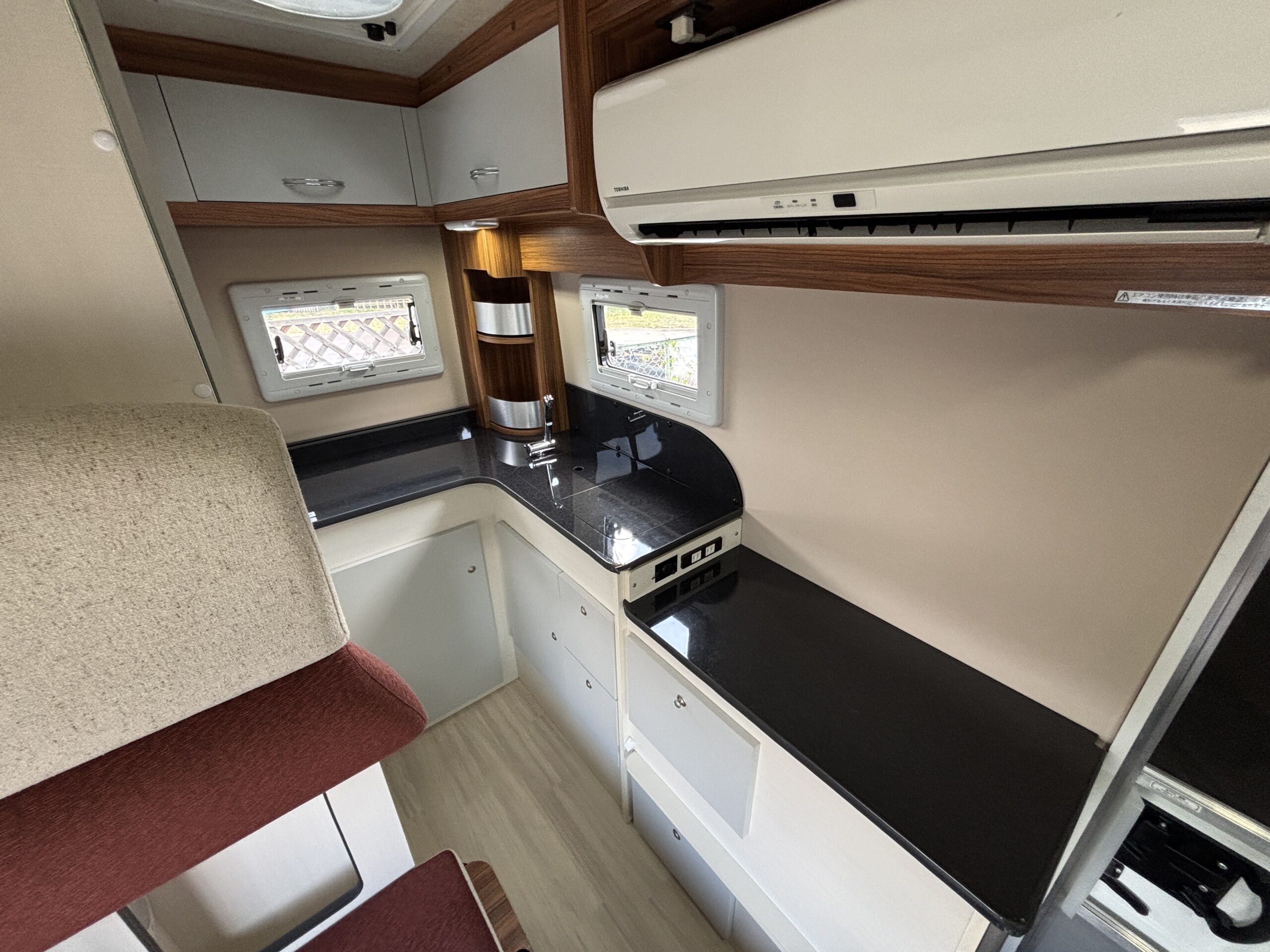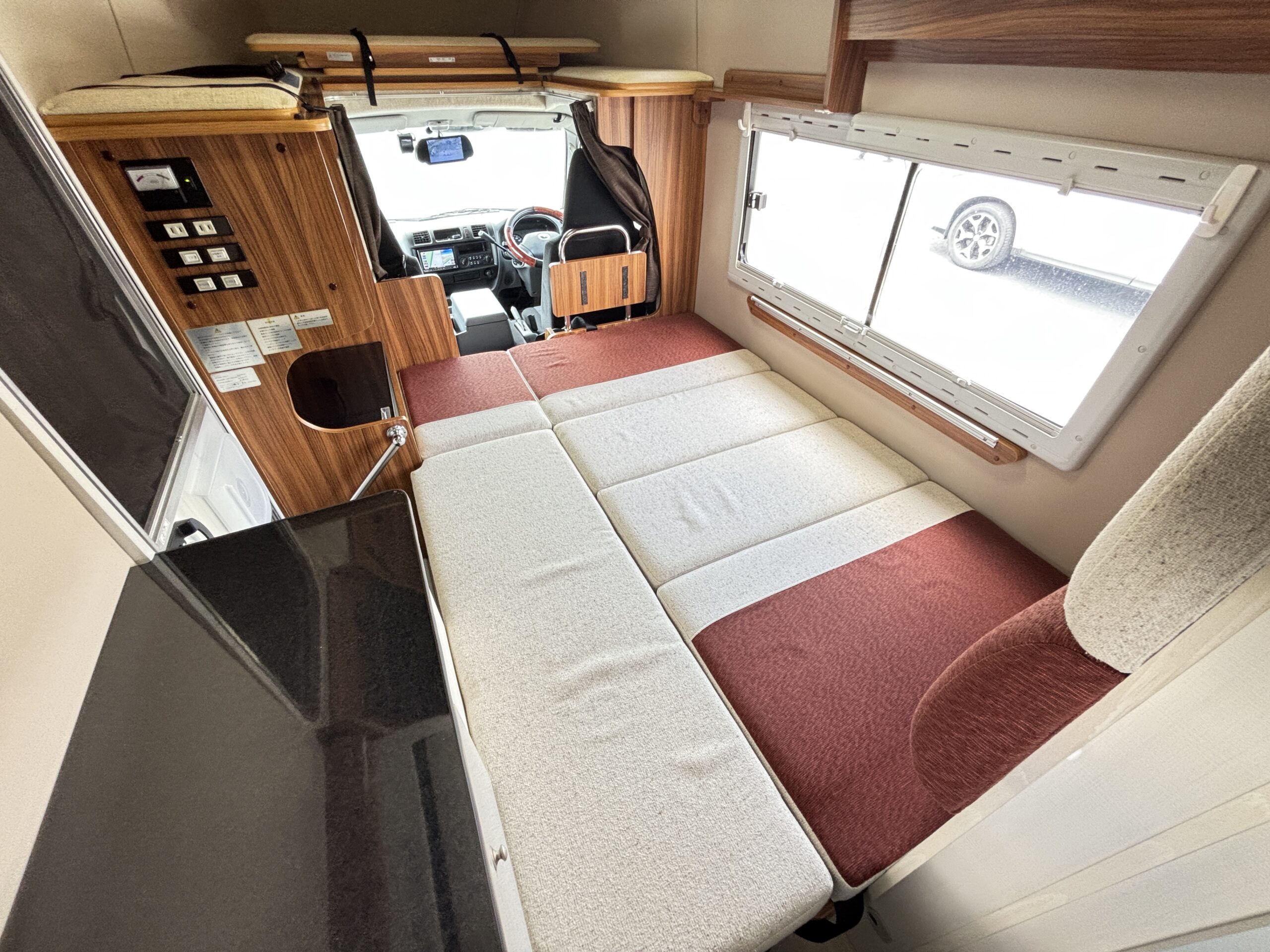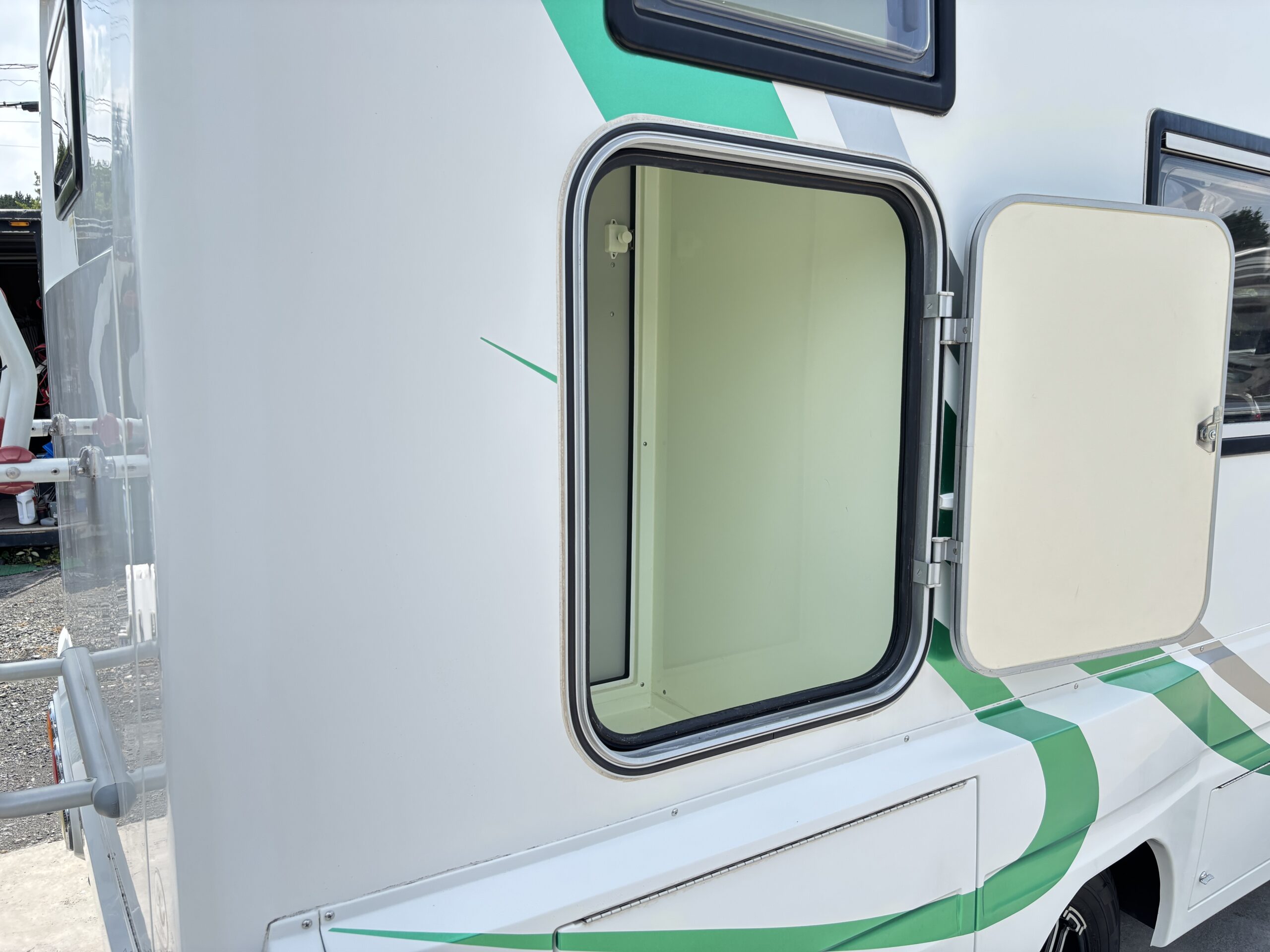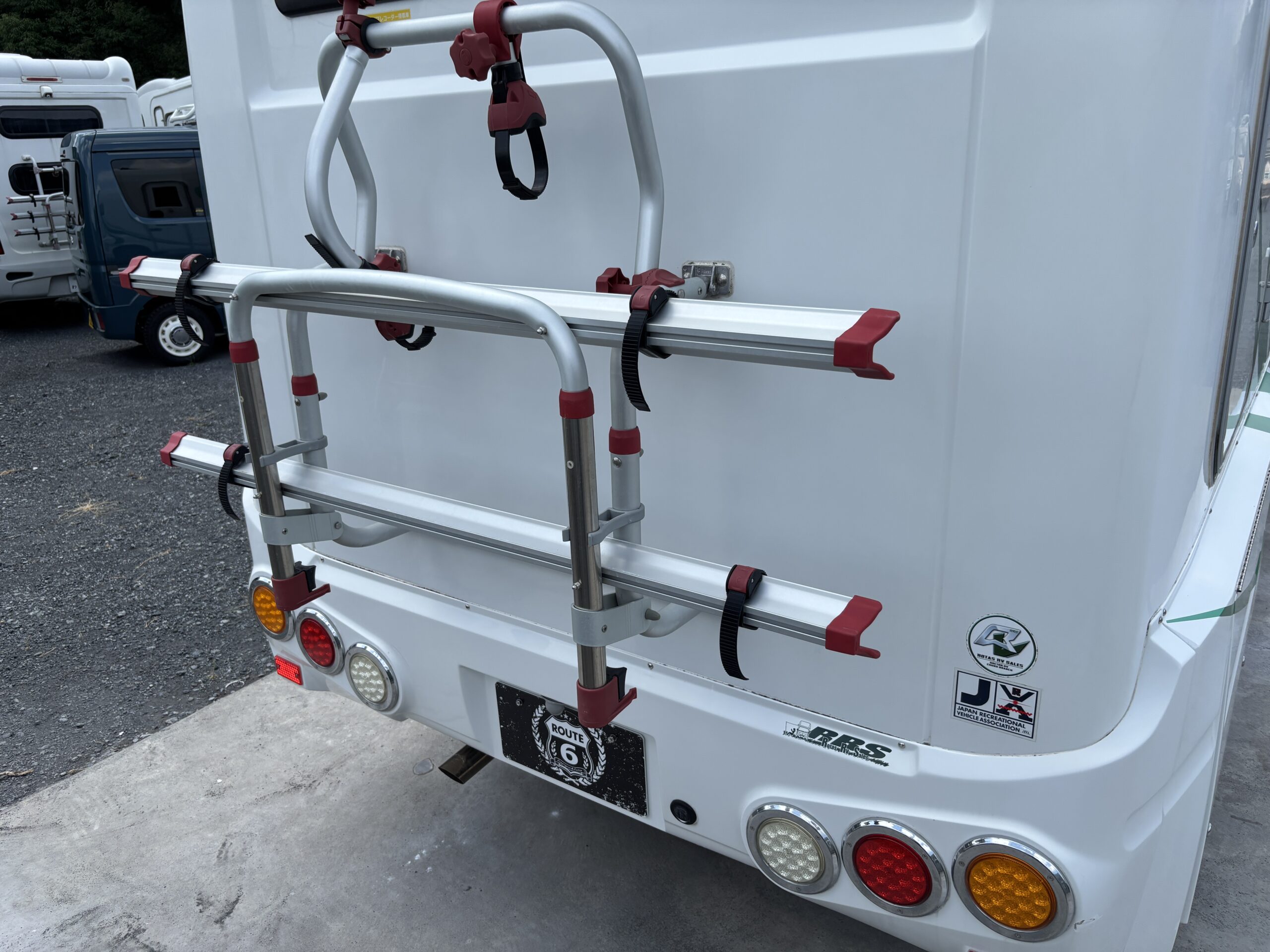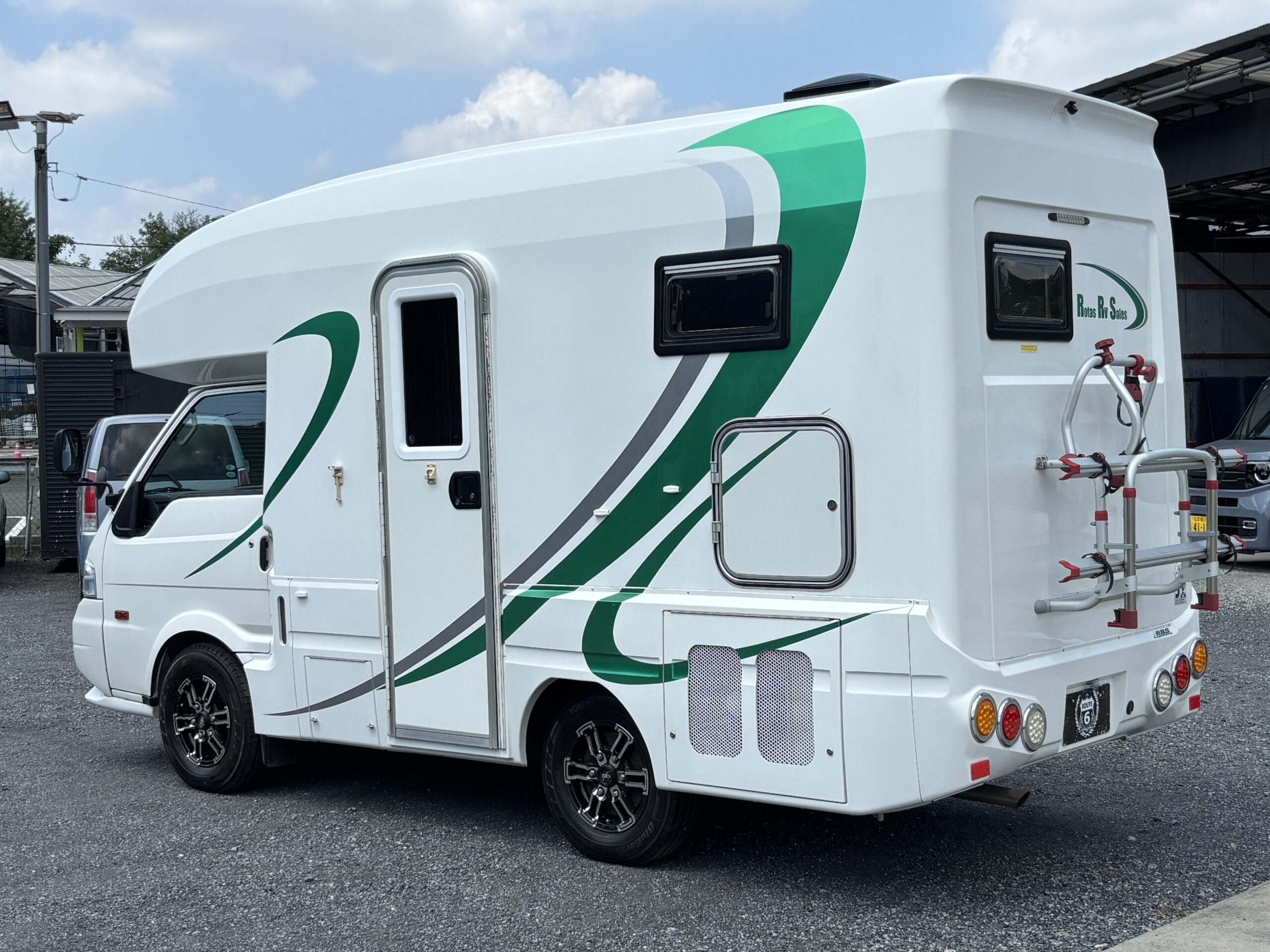 ツインサブ、発電機、エアコン、テレビ、サイクルキャリアなど充実装備。